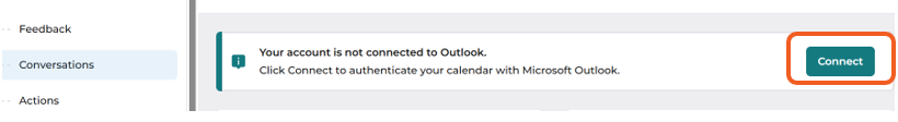 - To enable the outlook integration, go to "Conversations" and Select "Connect"