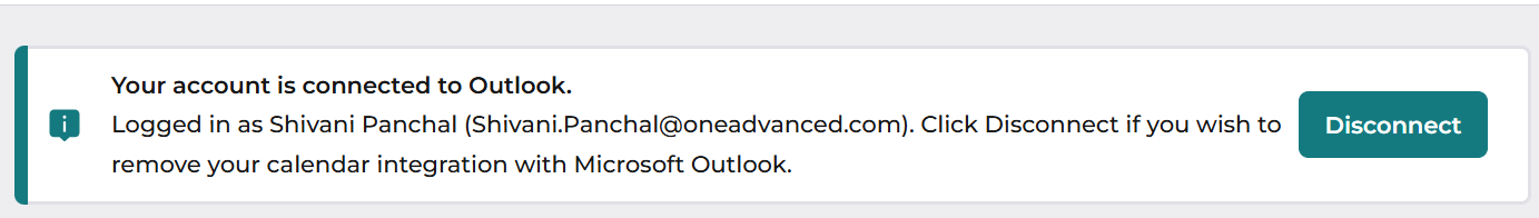 - This will then connect your Performance & Talent system with your outlook calendar, once connected it will look like the below: