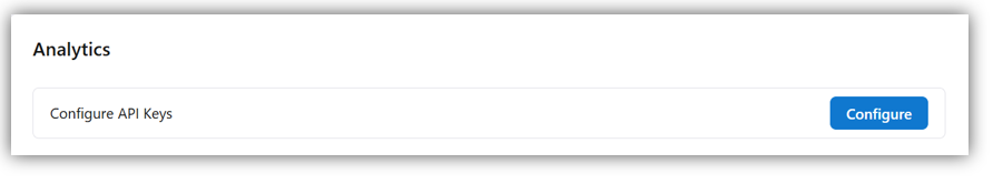 - Navigate to the Admin Setting > Analytics section and select Configure API Keys.