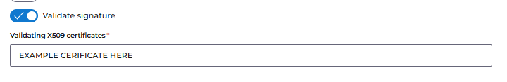 If you choose the 'Configure Your Own' option, you will need to toggle on the Validate Signature option and paste your certificate in the box. Once added, select the Create button at the bottom of the screen.