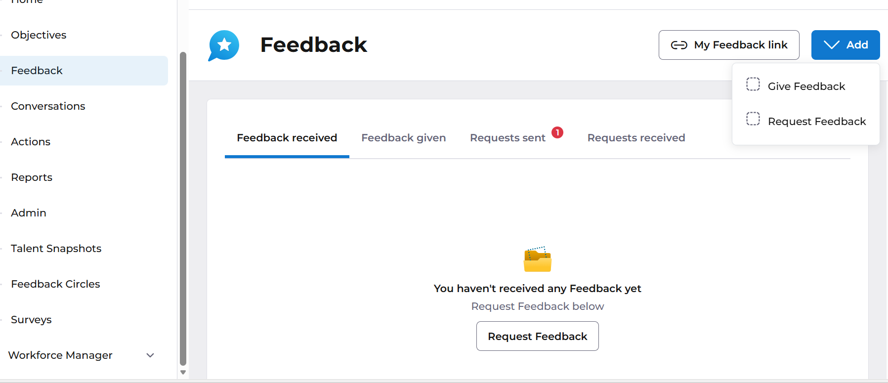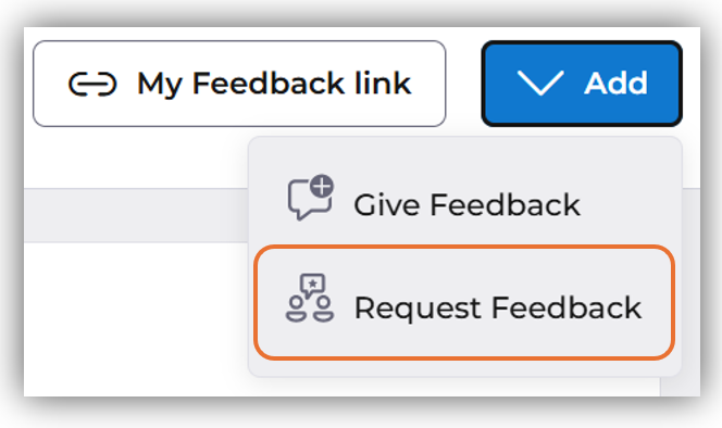 - Select the Request Feedback button from the Add drop down menu. This will open a new Request Feedback page.