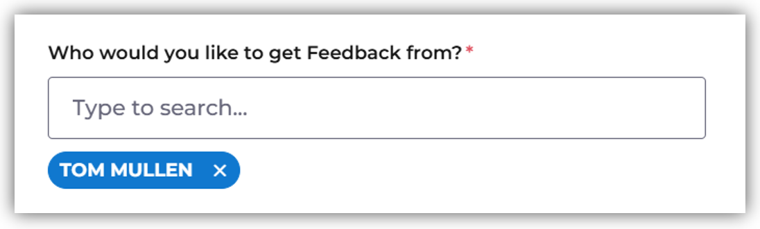 - Search and select who you want to request feedback from.You can request feedback from one or more people at the same time.