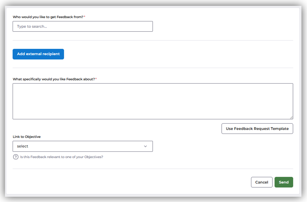 - Enter what you would like feedback about and link it to the objective of your need and select the Send button.
