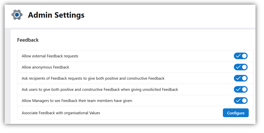 - Select the 'Configure' button in Associate Feedback with organisational values