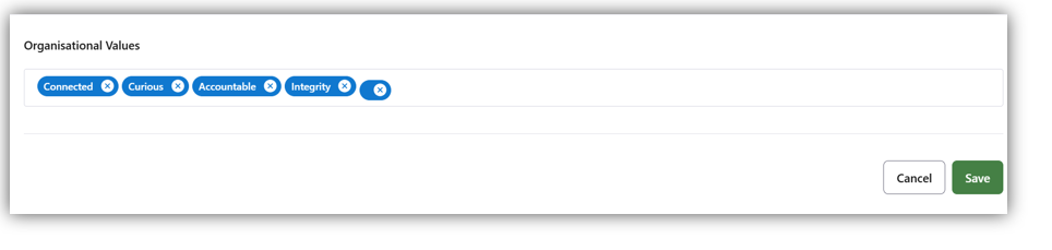 - Enter your company values in the provided Organisational Values field