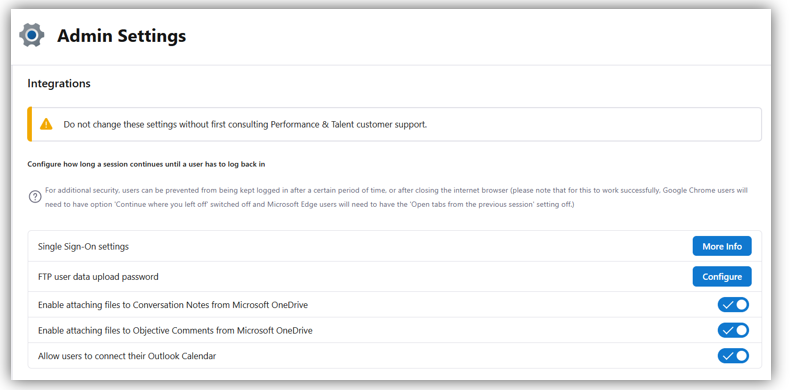 Performance & Talent has integrated with Microsoft 365 to allow users to integrate conversations with Outlook calendars. This includes the following functionality: