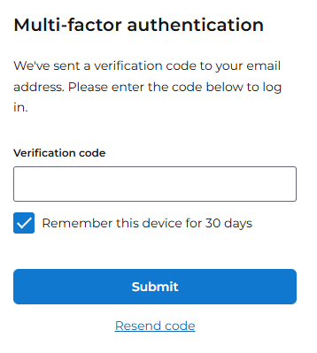 - A unique verification code will be sent to the registered email address. The code must be submitted to complete the sign-in process.