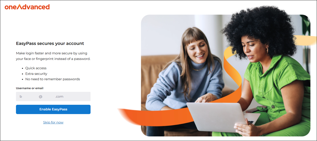 As an additional security measure, OneAdvanced Identity requires Multi-Factor Authentication (MFA) alongside email and password authentication. After migration, users will need to provide a second form of verification, which can be done via email or using your preferred authenticator app. You can also take advantage of EasyPass to provide your users the option of logging in with biometrics registered on their personal devices. See our EasyPass guide for more information.