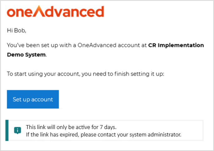 - If the account is not activated within the 7-day deadline, clicking the 'set up account' link in the email will display the following message
