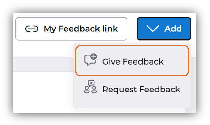 - Select Give Feedback button from the Add drop down menu. This will open a new Give Feedback page.