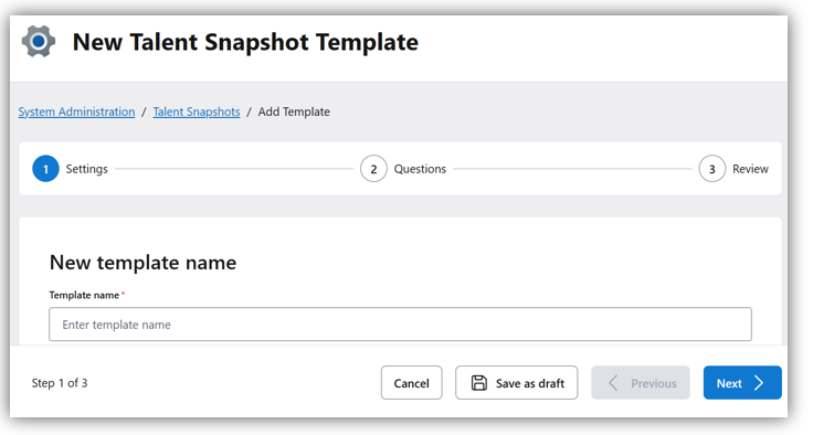 1.Select Admin Settings >Talent Snapshots: Configure, create and send out Talent Snapshots and templates to help review employee development and performance.